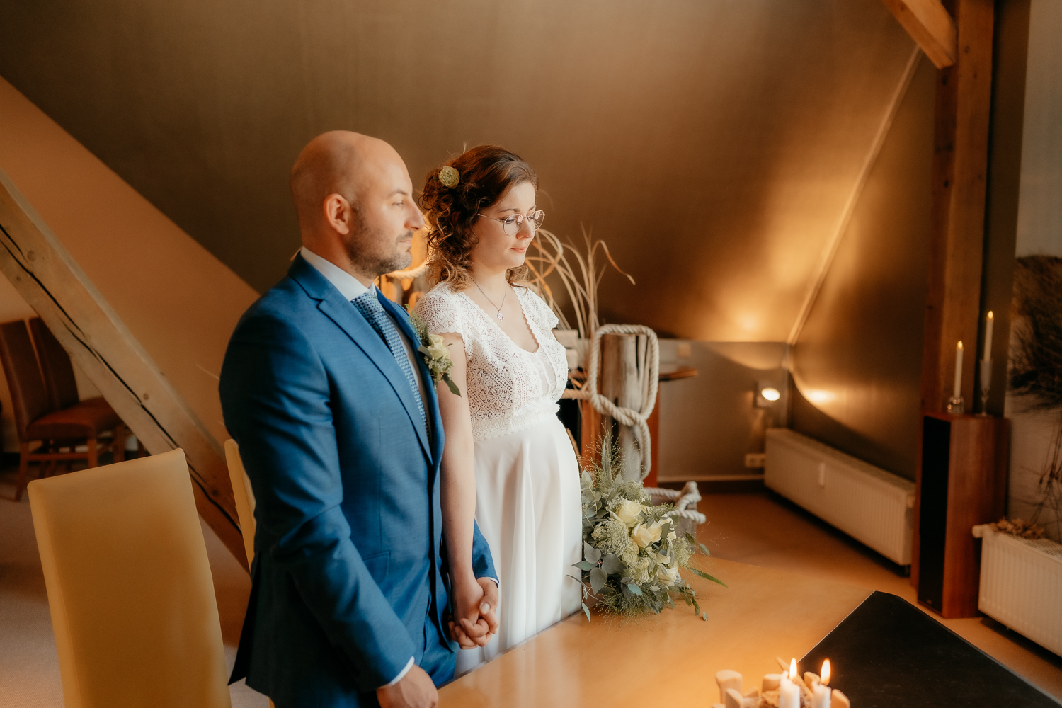 Hochzeitsfotos am Strand? Den großen Tag direkt am Meer verbringen? Das ist für sehr viele Paare ein großer Traum. Und ich als Hochzeitsfotografin in Mecklenburg-Vorpommern mache es sehr gerne möglich. Diese emotionale Trauung fand im Standesamt des Ostseebades Zingst statt. Nach einer wirklich wundervollen Rede der Standesbeamtin gaben sich mein Brautpaar vor ihrer Familie das Ja-Wort. Es flossen Tränen, es wurde gelacht und einander gehalten. Dadurch war es mir wirklich leicht die Trauung so gefühlvoll festzuhalten, wie ich sie erlebt habe. Dieses Brautpaar trägt ihre Herzen am rechten Fleck und genau das fing ich für die Geschichte ein. Die Familien verbrachte einen wundervollen Tag auf dem Darß bis wir uns am Abend zum After-Wedding-Shooting im Sonnenuntergang wiedersahen.