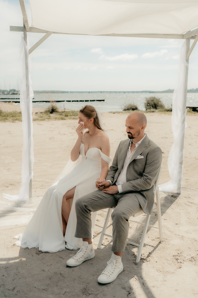 Emotionale Strandhochzeit im Strandhaus Altefähr – Freie Trauung mit Blick auf Stralsund