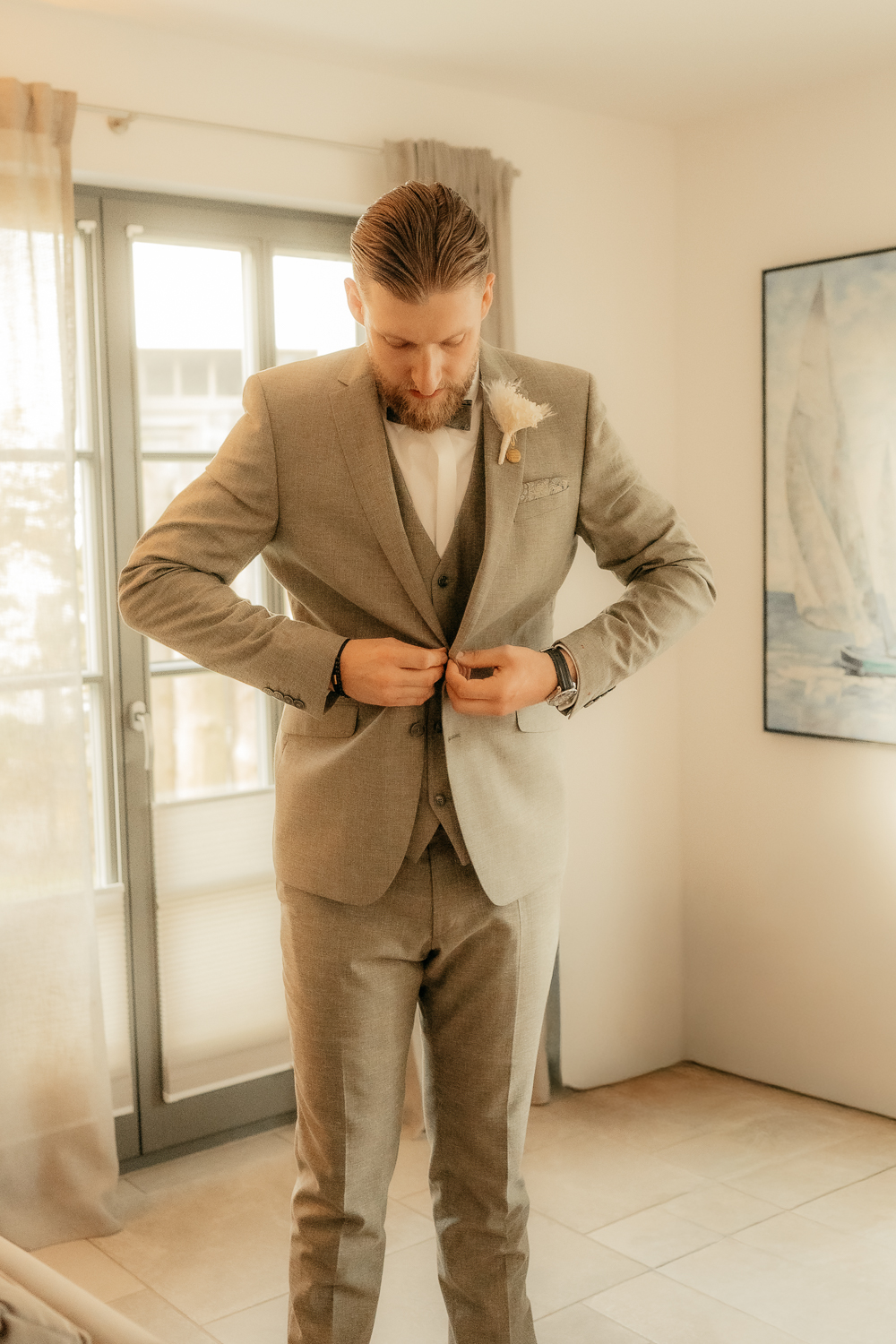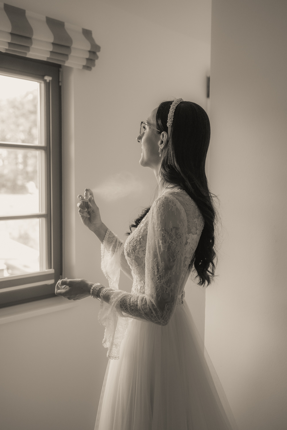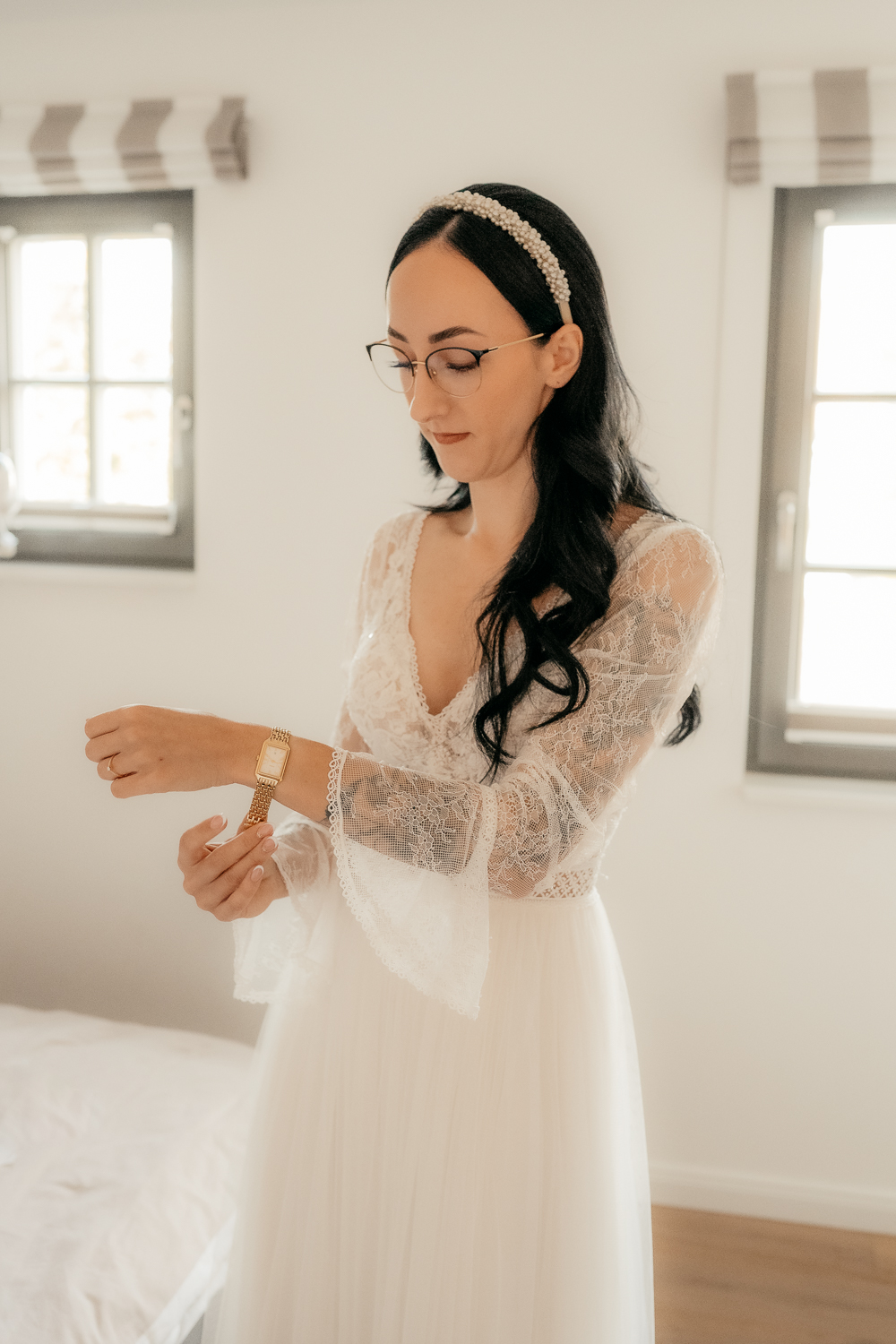 Für mich begann der Tag bereits beim Getting Ready, und ich liebe es, diese besondere Phase einer Hochzeit begleiten zu dürfen. Es ist der Moment, in dem sich alles formt: die Vorfreude, die Aufregung, die kleinen Details, an denen so viel Herz hängt.