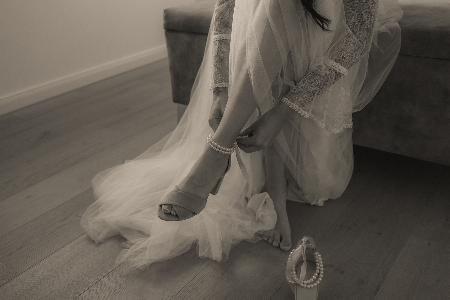 Ich durfte das Brautkleid fotografieren, den Schmuck, die zarten Schuhe, liebevoll gestaltete Ehegelübde – alles Dinge, die die Geschichte dieses Tages erzählen.