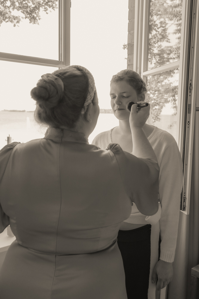 Überall lagen Lockenstäbe, Make-up-Pinsel, Kleiderbügel und halb geleerte Sektgläser. Die Aufregung war nicht nur spürbar, sondern nahezu greifbar. Zwischen Lachen, kleinen Freudentränen und aufgeregten Blicken hielt ich zunächst die Details fest: