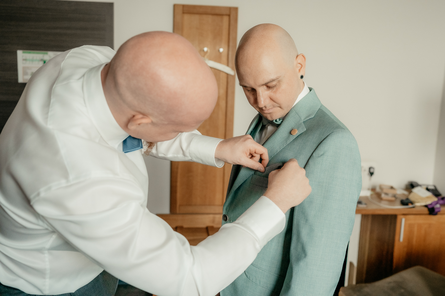 Doch nicht nur bei den Frauen war die Spannung groß – auch bei den Männern war deutlich zu merken, dass dieser Tag alles verändern würde. Ein letzter prüfender Blick in den Spiegel, das Anlegen der Manschettenknöpfe und ein tiefes Durchatmen vor dem großen Moment.