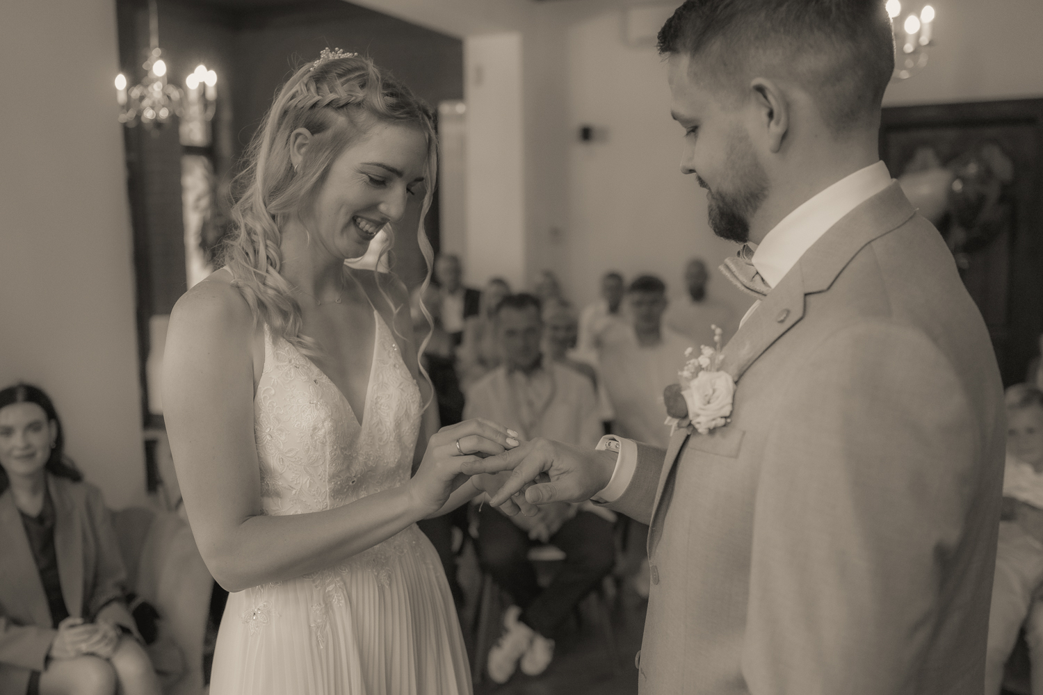 Gerade diese besondere Atmosphäre unterstrich die emotionale Trauung des Brautpaares. Während leiser Momente, liebevoller Blicke und bewegender Worte entstand eine spürbare Nähe – perfekt für authentische Hochzeitsfotografie, die echte Gefühle einfängt.