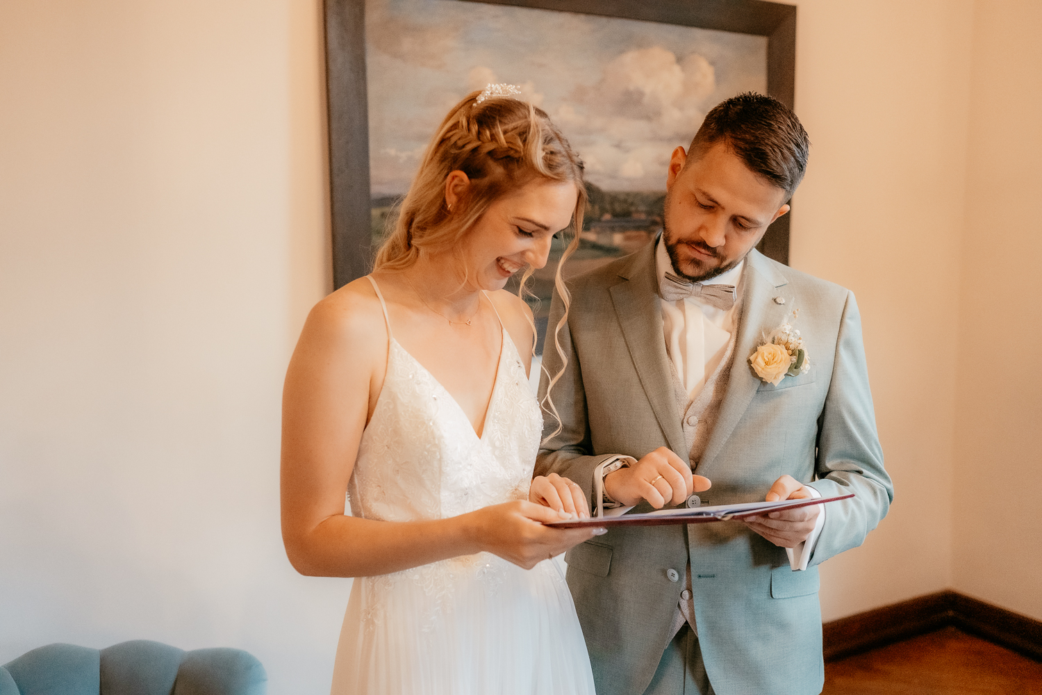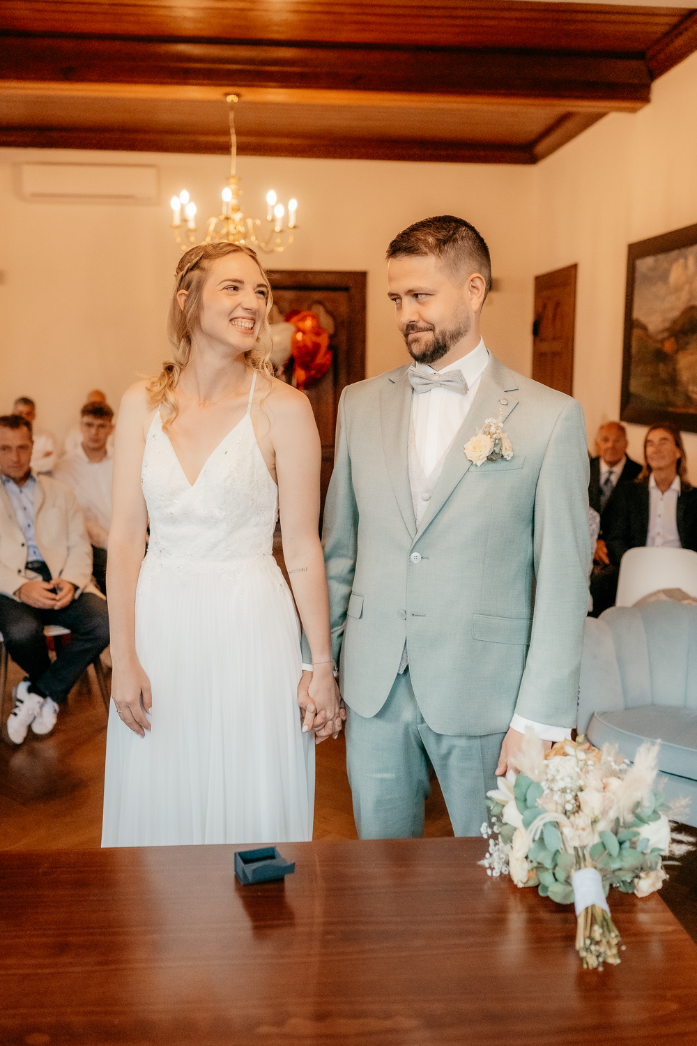 Da es sich um eine kurze fotografische Begleitung handelte, entschied sich das Brautpaar bewusst gegen ein klassisches Brautpaarshooting. Dennoch konnten wir in ruhigen Augenblicken einige natürliche, intime Paarmomente festhalten – ganz ohne Druck, dafür mit viel Gefühl.